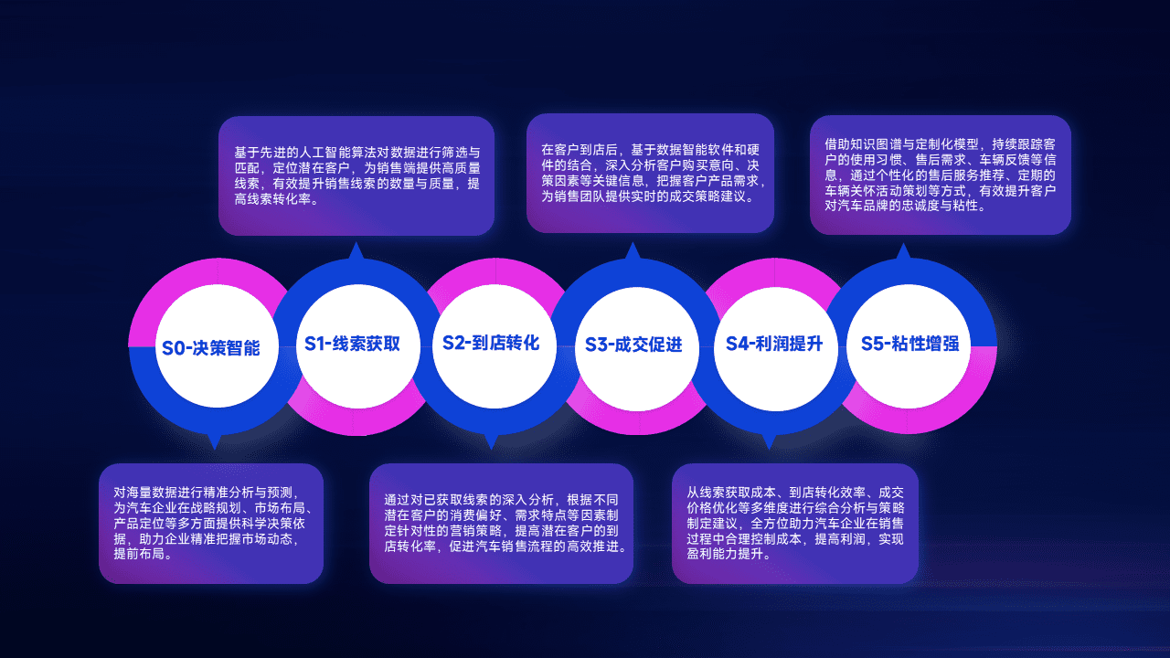 通过拓宽潜在客户来源、、优化线索分配并提高到店转化率,,以增强销售效率。。。同时,,利用线索数据不断优化分析模型,,,,有效提升转化率,,扩大营销影响力。。